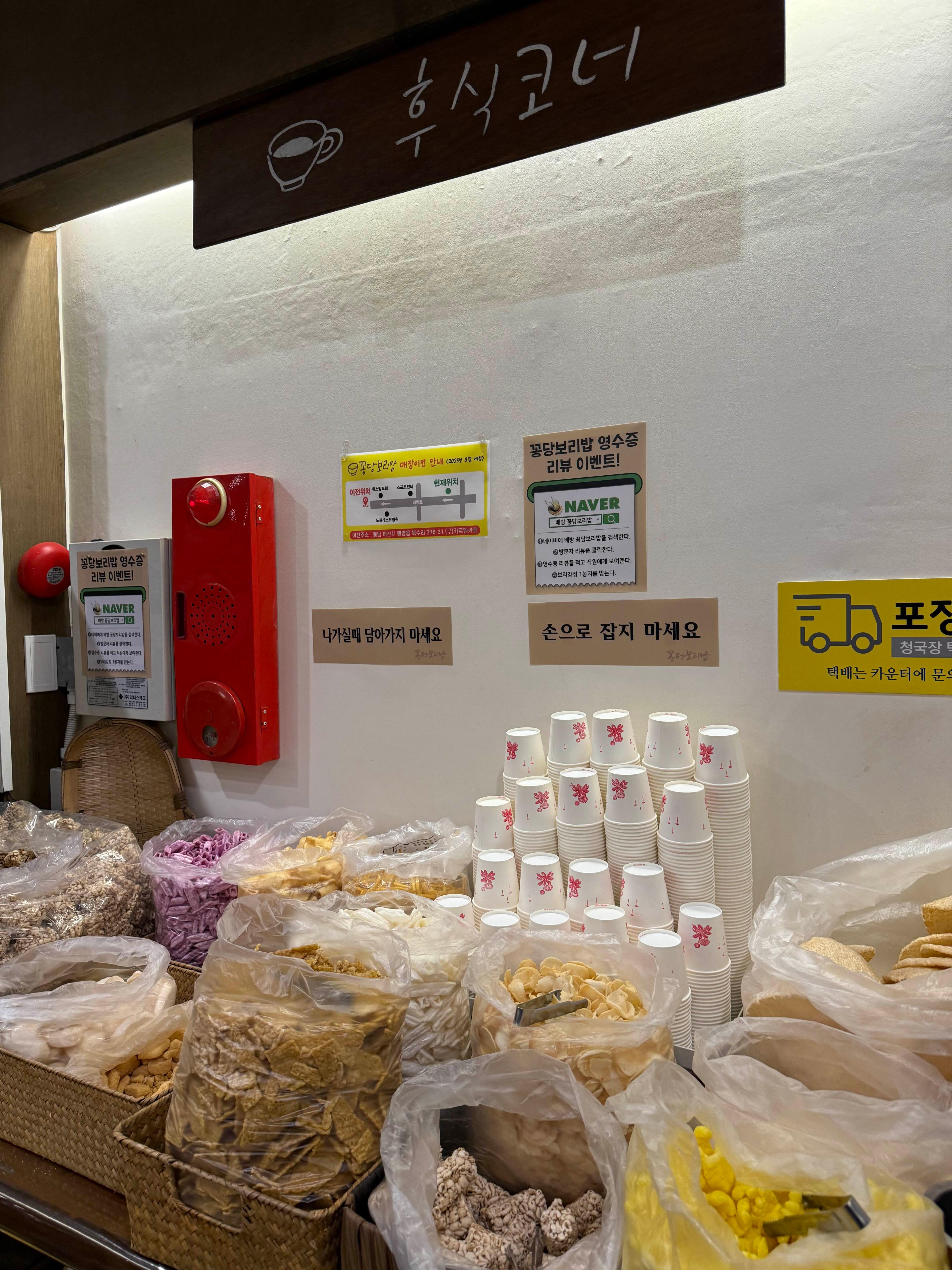 강정이나 과자들을 먹을 수 있어요.