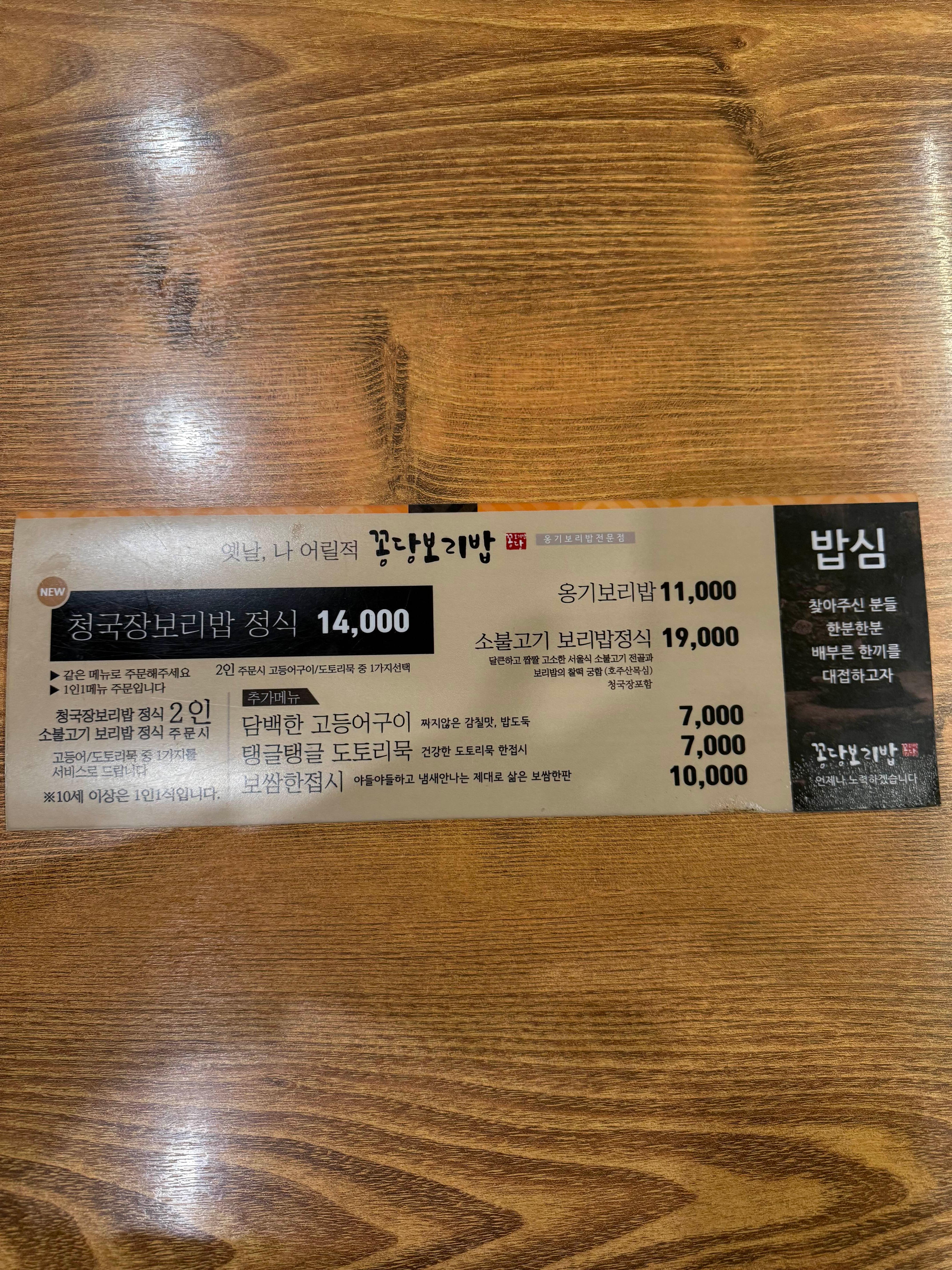 청국장 보리밥 2인이상 시키면