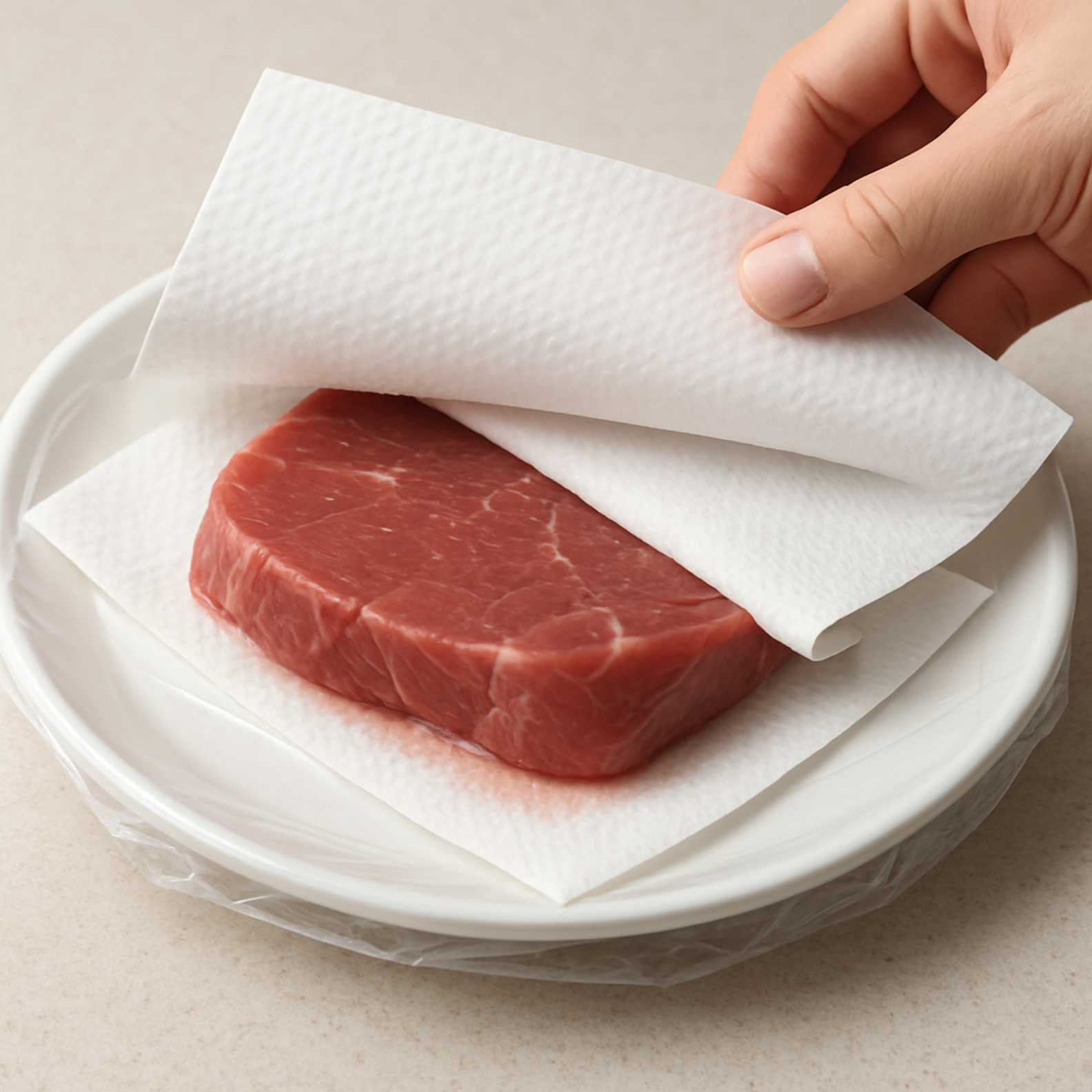 소고기를 물에 담그면 핏물은 빠질 수 있지만, 고기의 맛을 결정하는 육즙과 영양소도 함께 빠져나갑니다. 따라서 절대 물에 담그지 말고, 키친타월을 이용해 자연스럽게 핏물을 제거하세요.