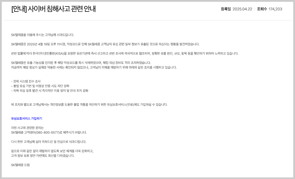 - 일시정지/이용정지 시 유심보호서비스도 해지됨