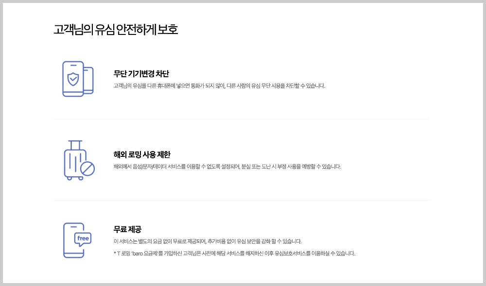 - 무단 기기변경 차단: 다른 폰에 유심을 넣어도 통신이 불가능하도록 차단
